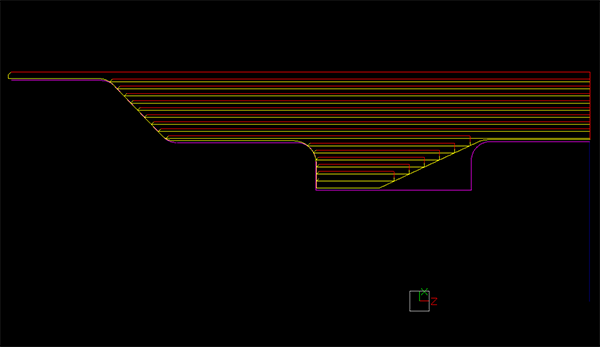 形状グループに対して等高線状に切り込む荒加工を行います。